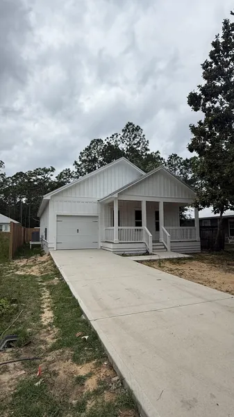 Beautiful NEW Home in North Santa Rosa beach ready for its first owner! This home has been perfectly designed to maximize space with a curated open floor plan. Along with that comes a front and back porch which is perfect for those Florida days and nights! As you walk through the house on the amazing LVP through the foyer you step into the living room and open concept kitchen complete with an island/breakfast bar. The crown moulding helps exemplify the beautiful 10 ft walls. The master bedroom is tucked away right off the living room with his and her closests along with its own master bathroom and tiled shower. The backyard has plenty of space along with a 10 ft privacy fence which helps maintain the quaintness of those Florida days.