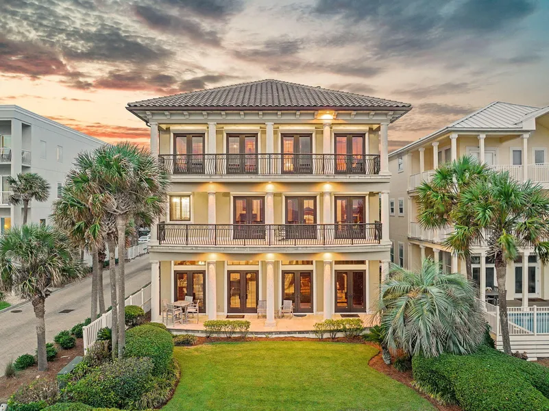 Welcome to 17 St Martin Cir, a breathtaking luxury first-tier Gulf-facing estate located in the sought-after Miramar Beach, FL in the gated community of Miravilla Shores. This stunning single-family detached home offers an expansive 5,521 square feet of living space, meticulously designed to provide an unparalleled living experience. Boasting seven spacious bedrooms and eight luxurious bathrooms, this home effortlessly combines elegance and comfort. Upon entering, you are greeted by a grand foyer leading to an inviting dining alcove, perfect for hosting intimate gatherings. The chef's kitchen is a culinary masterpiece, featuring a breakfast bar, butlers pantry, double oven, and top-of-the-line Energy Star appliances that include a double refrigerator, professional gas range, and range hood. Sleek stainless steel appliances and premium counters complete the sophisticated design. Make your way to the second floor by grand stairway or elevator and be greeted by four bedrooms, including the luxurious Gulf-facing primary suite with breath-taking, unobstructed beach views from the expansive 39' balcony. Catch a sunset view while soaking in the large soaking tub located in the primary bath, further featuring a walk-in shower, dual vanities, and two walk-in closets. The Jack and Jill style bedrooms share a full bath with walk-in shower, and guest count is maximized in the bunk room which features a charming Juliette balcony and additional full bath. For further entertainment and relaxation, you will find a recreation room/lounge area with a double-sided gas fireplace, a fully-equipped wet bar with two 50 inch tv's, GE ice maker, GE wine chiller, and card table for the perfect game night on the Gulf. From the 39' third-story balcony you will be mesmerized by the most iconic views of the Gulf that Miramar Beach has to offer- the perfect location to watch the 4th of July fireworks, which are visible as far as the eye can see. There simply is not a better view in town than from this balcony! Relax in style in the media/recreation room or unwind in the cozy library/den, both offering versatile spaces for entertainment and leisure. The home's working fireplaces add warmth and charm to the main living area and two Master Suites. Step outside to discover your private oasis, complete with stunning 3-story terraces and balconies, ideal for soaking in the incredible Gulf views and enjoying the beautiful Florida weather, with the option to add a Gulf-facing private pool. The property is fully furnished to a high standard, ensuring a seamless move-in experience. Security is paramount, with features including a security patrol, security gate, security system, and video security providing peace of mind. This exquisite property combines luxury, privacy, and security, making it an exceptional place to call home. Don't miss this rare opportunity to own a piece of paradise in Miramar Beach.