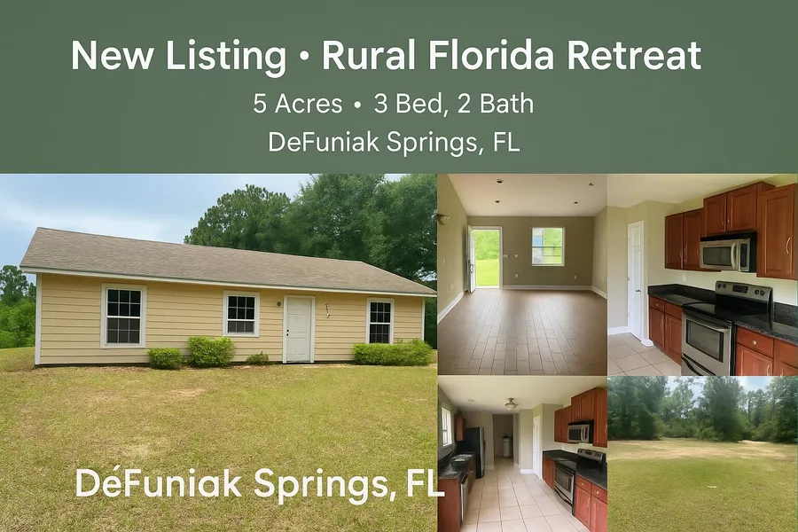 Real Estate Owned Opportunity knocks on over 5 acres in Northwest DeFuniak Springs. This ranch-style home features a split bedroom floorplan, vaulted ceilings, and an open living space designed to bring the outdoors in. Tucked just southwest of Kings Lake and Holly Lake, this wooded lot offers privacy, space, and potential ideal for a primary residence, weekend retreat, or off-grid buyer.The home is equipped with central heating/cooling, private well, and two septic tanks (one currently in use). The master suite offers a garden tub, solid surface vanity, and walk-in closet. Kitchen comes complete with stainless steel appliances, including dishwasher, microwave, and refrigerator. Large living room with cathedral ceilings and plenty of natural light call to look at 159 Michigan Lane