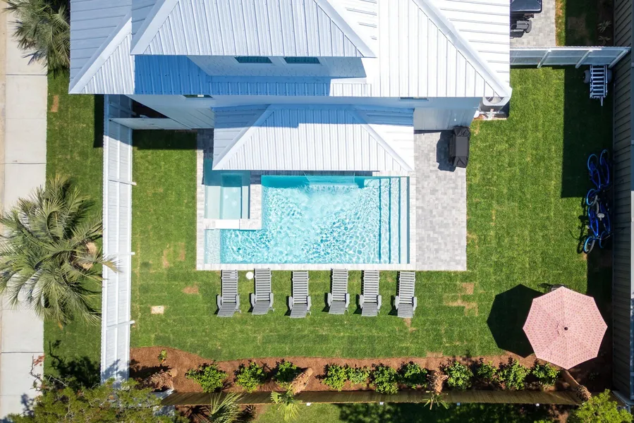 2025 Built - Luxury Vacation Rental in The Villas of Frangista with projected gross revenue $165,000- $200,000! Located on a prime corner lot in the gated community of The Villas of Frangista, this stunning 3-story luxury home is delivered turn-key and fully furnished-perfect for a high-performing vacation rental or private coastal retreat. Designed with both comfort and style in mind, the home features a spacious open-concept living and dining area, a chef's kitchen with a large island, front and back porches, a balcony, and a private heated pool and spa with outdoor waterfall feature for ultimate relaxation. With 6 generously sized bedrooms, each with its own beautifully appointed private bathroom, the layout offers one bedroom on the first floor, four on the second, and one on the third, ideal for guest privacy and convenience. The oversized driveway accommodates up to 5 vehicles. Located just a short walk to private deeded beach access and minutes from world-class dining, entertainment, and premium shopping along the Emerald Coast, this property offers exceptional value and rental potential.