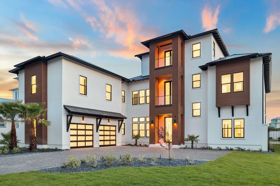 Luxury Modern Estate with Expansive Gulf Views. Welcome to a one-of-a-kind Boswell built luxury retreat where modern finesse meets coastal serenity. Nestled along the pristine shores of the Gulf of America, this architectural masterpiece offers breathtaking, nearly unobstructed views of the Gulf from nearly every vantage point. The area behind the home cannot be built on ensuring Gulf views for the future of this home. Boasting high-end finishes throughout, the home is thoughtfully designed with both style and functionality in mind. This Smart-home-enabled residence features an in-home elevator that seamlessly connects all levels. Outfitted with the advanced Control4 Whole House System, it offers unmatched convenience, customization, and centralized control throughout the home. The main living area opens to a chef's dream kitchen outfitted with state-of-the-art Thermador appliances, sleek cabinetry, and a hidden butler's pantry for seamless entertaining A temperature-controlled wine room and a fully equipped theater room elevate the lifestyle experience, offering refined spaces for relaxation and leisure. The home also features a guest suite complete with a full kitchen and living space. Designed for entertaining, the expansive recreation room leads directly to the outdoor oasis, featuring a large perimeter overflow pool, spacious sun deck, and lush modern landscaping as well as a fully equipped outdoor kitchen. Oversized outdoor balconies provide the perfect setting to enjoy sunsets over the Gulf. This home also features a whole house generator. The master suite, located on the third floor, is a sanctuary of luxury, complete with large sliding doors for awe-inspiring Gulf views, a spa-like en-suite bath, and a custom walk-in his and her closet. Elevated touches like large-format main tiles, warm cypress wood accents, and designer lighting enhance the home's modern aesthetic, while every detail, from the spacious layout to the thoughtful finishes, reflects unparalleled craftsmanship. This estate is not just a home; it's a lifestyle. Schedule your private tour today and experience the pinnacle of modern luxury.