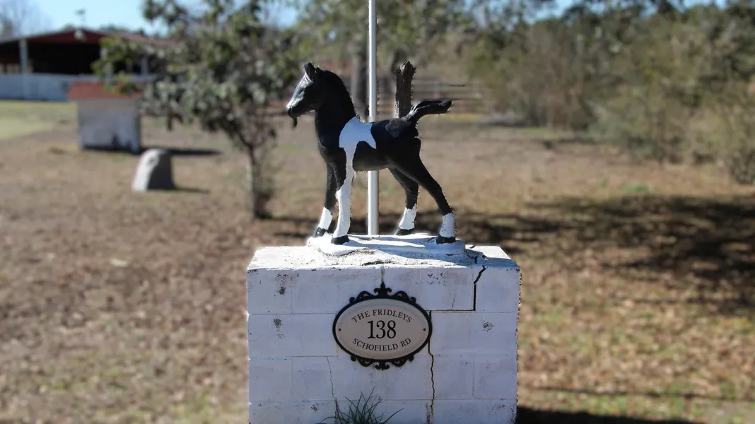 -Newer Septic system, -HVAC system, -Generac generator, -Vinyl windows and newer doors -Large eat in Kitchen with wood cabinets, -ADT alarm system transferable. The property includes a barn, 6 stables, two feed rooms, and a small outbuilding that could be converted into an office or additional guest space. The land is fenced; however, the seller cannot confirm the current condition of the fencing. Known items needing attention include a leak beneath the shower drain and soft spots in the subfloor due to shower leak and possible termite damage. The home is currently under a termite bond. With a renovation loan, this property offers excellent potential to be restored into a longterm legacy home with equity. House has an alarm and audio video monitored. NO SURVEY