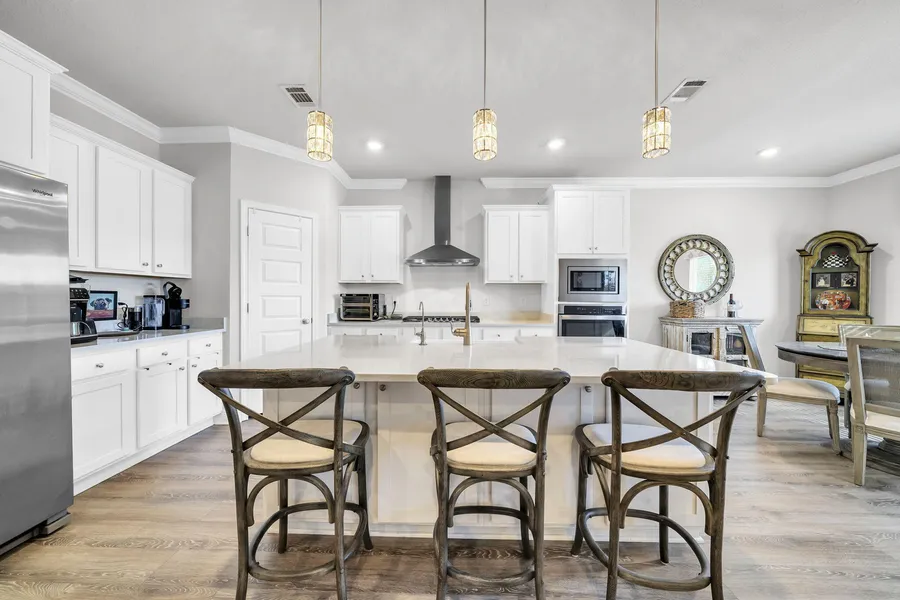 You pull into Lakeview Estates, the gate closing softly behind you, the noise of the day just . . . fades. This is Santa Rosa Beach living the way many people hope to find it - close to everything yet comfortably tucked away. This five-bedroom home is designed for real life. Mornings start easily in the open kitchen, where quartz countertops, generous cabinetry, and plenty of workspace make everything from quick breakfasts to weekend gatherings feel effortless. The kitchen flows naturally into the main living area, so conversations carry, laughter lingers, and no one feels tucked away while hosting. The split floor plan is a quiet win. The primary suite offers a true retreat at the end of the day, while the additional bedrooms flex to fit your life - guest rooms, home offices, hobby space, or a little of everything. Step out to the screened porch and enjoy evenings outside without the bu...