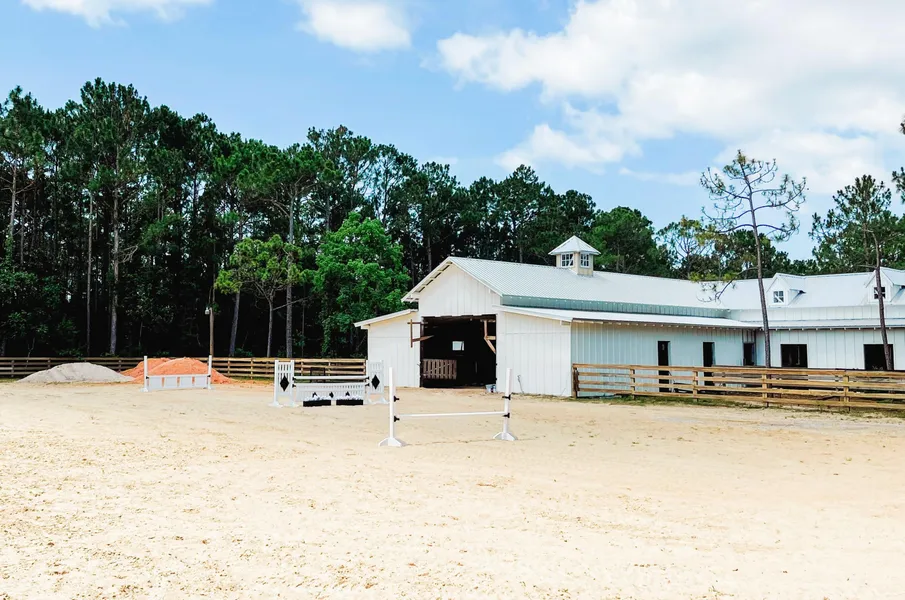 EXQUISITE EQUESTRIAN ESTATE located only 4.3 miles from the world-renowned beaches of 30A on Florida's Emerald Coast. The stunning 3 bedroom, 2 bath home welcomes you with an open floor plan, shiplap cathedral ceiling, modern lighting, Calacatta quartz countertops, Cafe appliances, hardwood floors, clawfoot tub, and countless other fine touches. The home's exterior highlights relaxing covered porches plus a new metal roof and Hardie siding. Also featured on this spacious 9.75 acre estate is the extraordinary "Sea Salt Barn." With 6500 sqft, 21 European-style stalls, pavers, automatic waterers, tack room, 6 paddocks, 100'x200' riding arena, and new 60' round pen - you and your horses will have it all. There's also a growing fruit orchard, RV hook-up, and an upcoming greenhouse. Less than a mile away is Cessna Landing boat launch out to the Choctawhatchee Bay. An abundance of dining and sh...
