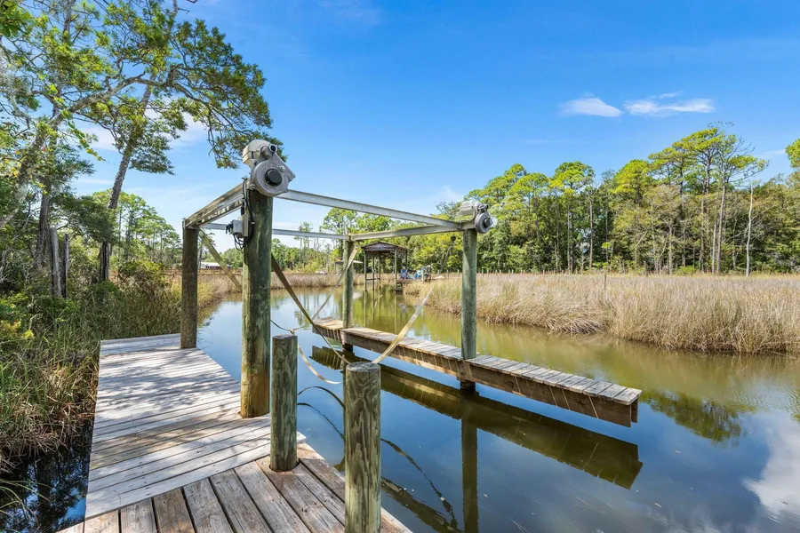 Waterfront living at its best! This 5-bedroom, 3-bath home with office/study and formal dining sits on 82.5 feet of Mussett Bayou and comes complete with its own pier, dock, and boat slip-offering direct access to Choctawhatchee Bay via Hogtown Bayou. Whether you're an avid boater, fisherman, or simply love relaxing by the water, this property delivers the lifestyle you've been dreaming of. Located at the back of a quiet gated cul-de-sac in Mussett Bayou Estates, this sought-after McKenzie floor plan by D. R. Horton backs up to a natural preserve, providing both privacy and serene views. Inside, the open layout is perfect for entertaining, with a gourmet kitchen featuring granite countertops, stainless steel appliances, mahogany cabinets, an island with wine cooler, and a hop-up breakfast barall flowing seamlessly into the great room and breakfast area. Large windows and double-tray ceilings fill the space with natural light, while sliding doors open to a covered, screened lanai overlooking the backyard and water. The split-bedroom design offers comfort and privacy, with the Master Suite tucked away at the rear of the home. Here, you'll enjoy direct lanai access, a spa-like bath with jetted garden tub, oversized tiled shower, dual vanities, and a huge walk-in closet. Additional highlights include hardwood floors, upgraded lighting, tile in all wet areas, a finished two-car garage with attic storage, Fabric Shield hurricane protection, and lush landscaping with exotic trees and shrubs. From quiet mornings on the dock to sunset cruises on the bay, this home blends elegant interiors with an unbeatable waterfront lifestyle.