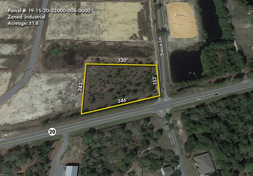 Prime +/-1.8 acres zoned Industrial and yielding +/-346' of which fronts Highway 20 and in proximity to the Mid-Bay Bridge. This exceptional parcel is centrally located to Niceville, Destin, City of Freeport, Defuniak Springs, and South Walton County, Florida!