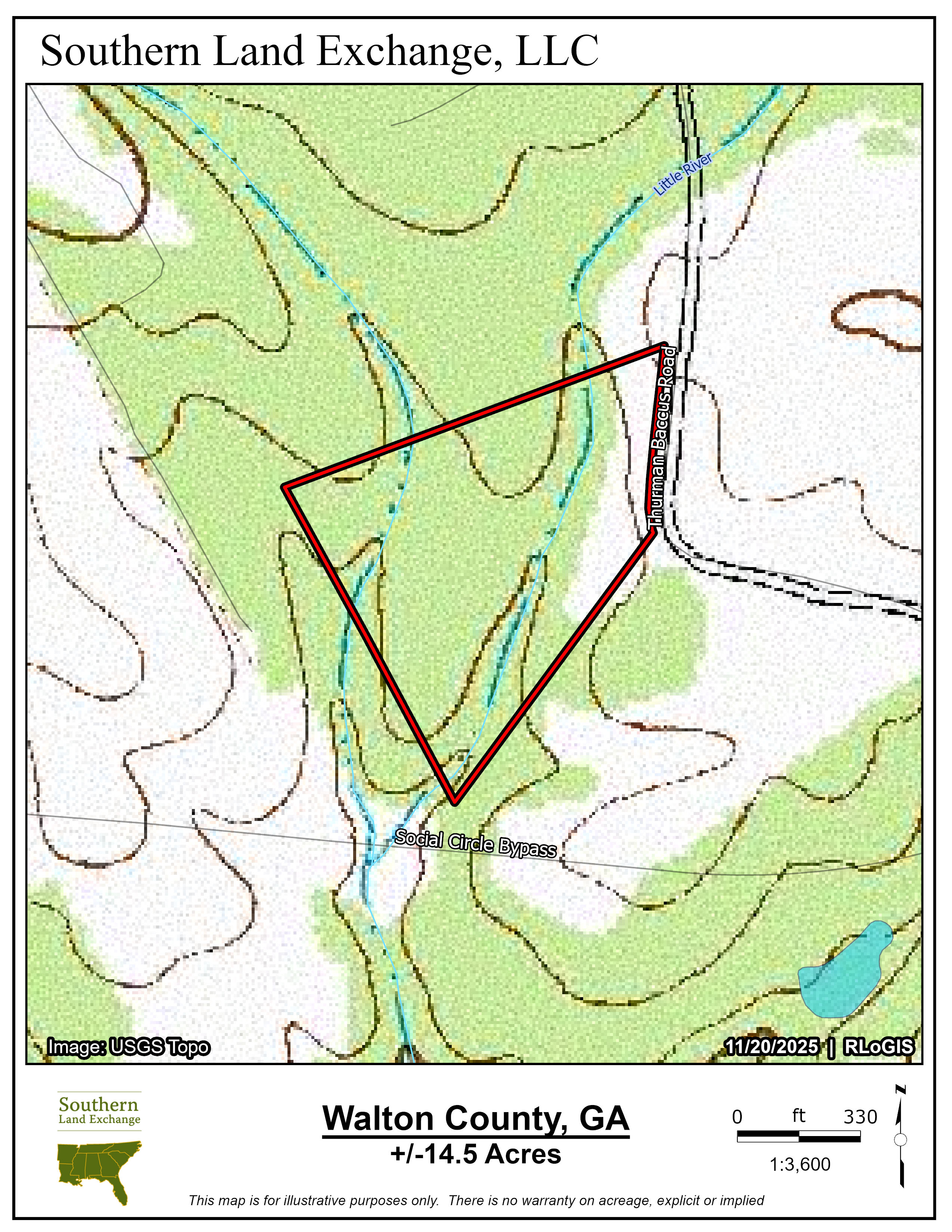 Southern Land Exchange is proud to present Little River Tract - a 14.5 acre property located in the desirable City of Social Circle. Social Circle is known for its small-town charm, good schools and proximity to Atlanta. Little River Tract gets its name from the beautiful Little River that runs through the property. With over 1,000 feet of frontage on both sides of the river, beautiful rock shoals and small swimming holes, Little River is a great water feature. Abundant wildlife makes this property an excellent option for recreational minded buyers looking for a place to build their home while also enjoying the great outdoors. In addition to Little River, there is also a small creek that runs through the property, improving the wildlife habitat even more. There are multiple potential homesites on the property. The site at the road is the most convenient for getting construction trucks in and out. There is also beautiful build site towards the middle of the property, however there would be a creek crossing. There is approx. 500 feet of paved frontage on Thurman Baccus Road. As for location, the new elementary school adjoins the southwest boundary line of the subject property. Downtown Social Circle is less than 2 miles away and it's about 1 hour to the Atlanta Airport. Little River Tract is one of the best price-to-acreage properties available in Social Circle! Call Travis Ebbert at 706-614-8840 for more information and to schedule a time to tour the property.
