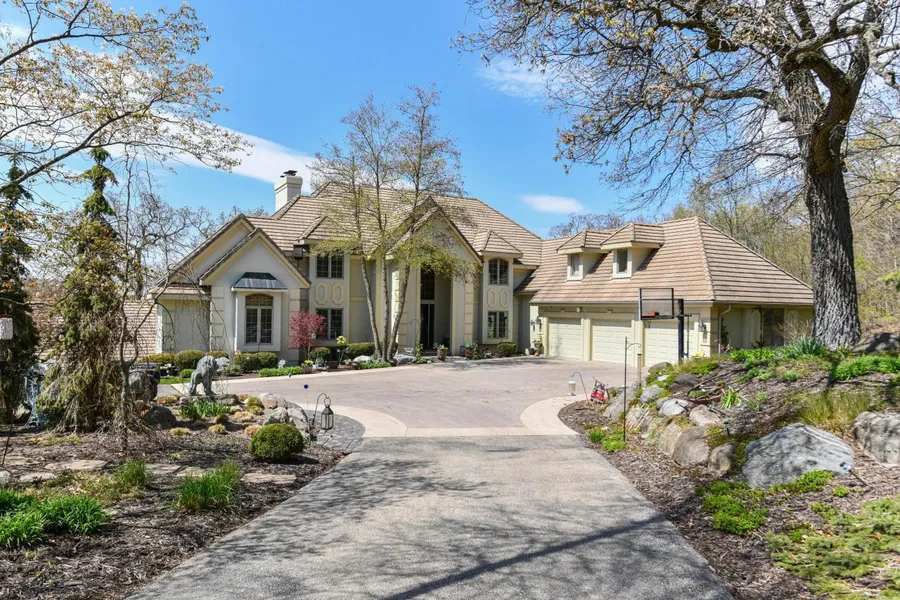 RARE OFFERING STUNNING ARCHITECTURE BEAUTIFUL GROUNDS AND VIEWS 10,000 Sq/Ft, 5 BR, 5 full bath, 3 1/2 bath New England style main house. Two story gathering room with floor to ceiling windows and fireplace, overlooking the lake. Massive crystal chandelier in foyer. Formal Dining Room, Kitchen, Den, and Laundry Room. Second floor 3 EN-Suite bedrooms, and foyer landing. Walk-out lower-level rec room with fireplace, bedroom, theater room, whirlpool and indoor pool. 3+ car attached garage. Property entails approximately 73 ACRES fronting on South Road in desirable Lyons Township just East of Lake Geneva. Trails, hunting, fishing, horseback riding, and more. Additional parcels available.