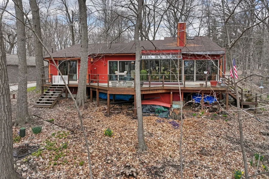 Located off prestigious Snake Road on the north side of Geneva Lake and winding towards the lake through the historic gates of Bonnie Brae, you'll discover this charming home situated on nearly 1.5 wooded acres. It comes with a perpetual 15-foot-wide deeded easement to the lake and exclusive use of a 50 feet wide by 40 feet deep parcel of level land on Geneva Lake with riparian rights and a private pier for docking a boat. (The lakefront parcel is a perpetual exclusive easement appurtenant, that runs with the land) Inside, you'll find an open floor plan with 3 bedrooms, 2.5 baths, a sun room, loft, and an oversized deck that stretches across the back of the home. There is a 2-car garage and a full unfinished basement with plenty of space for your creative touches. There is so much potential in this property with a nearly 1.5 acres, located off Snake Road, and with a level lakefront yard and pier. This is a rare find!