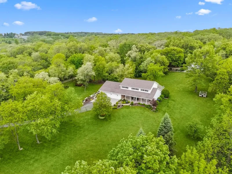 Welcome to your personal oasis! This tucked away setting will provide you the tranquility you've been seeking on 5 acres, close to Milwaukee and Chicago. You will find beautifully elevated thought-out upgrades throughout. Fresh paint and flooring, updated master bath (2024), open concept dining w/outdoor veranda make entertaining a delight, indoors and out. Land teemed with wildlife. Dual basement entryway make easy possibility of a in-law suite. Open enrollment, to access the highest quality private/public schools. Dream heated garage (1200sqft)for all the toys, possibilities are endless. Set up your Viewing Today!