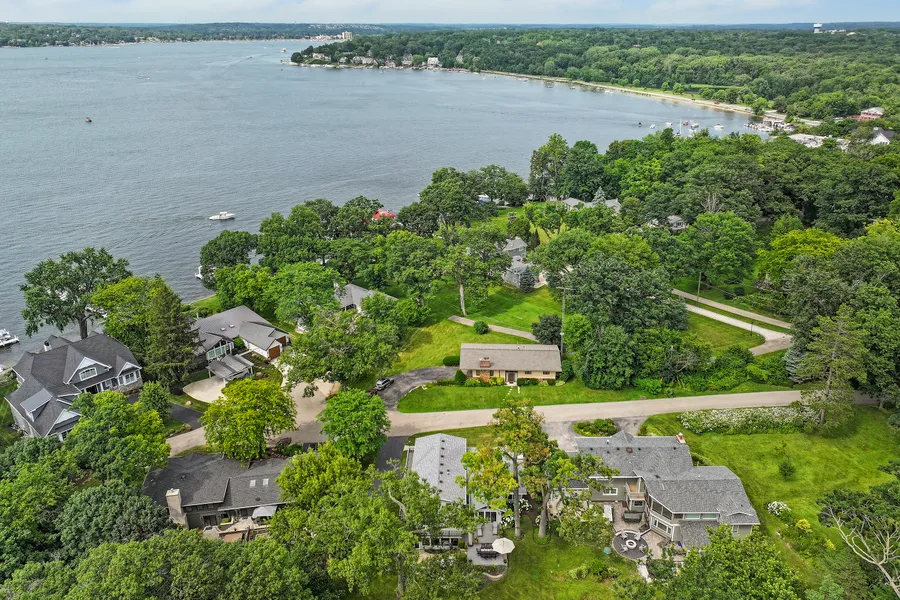 Located beyond the historic Hollybush gates and only steps from Geneva Lake, this exceptional 3+ Bedroom, 2.1 bath home on a tree-lined street offers a rare blend of charm, privacy, and lake lifestyle. Set on .42 acres with lake views and a wooded backdrop, it includes a transferable boat slip and access to a private lakefront area, shared by only six homes, with pier, lakeside deck, and jet ski ramps. Inside, enjoy a vaulted great room with fireplace, sun room, and spacious walkout lower-level family room with fireplace and screened porch. Upstairs are three bedrooms, including the primary suite with lake views and a wraparound deck. A sub-basement includes a bonus room, full bath, and generous storage. The lush backyard features a deck and fire pit, perfect for entertaining. A rare find!
