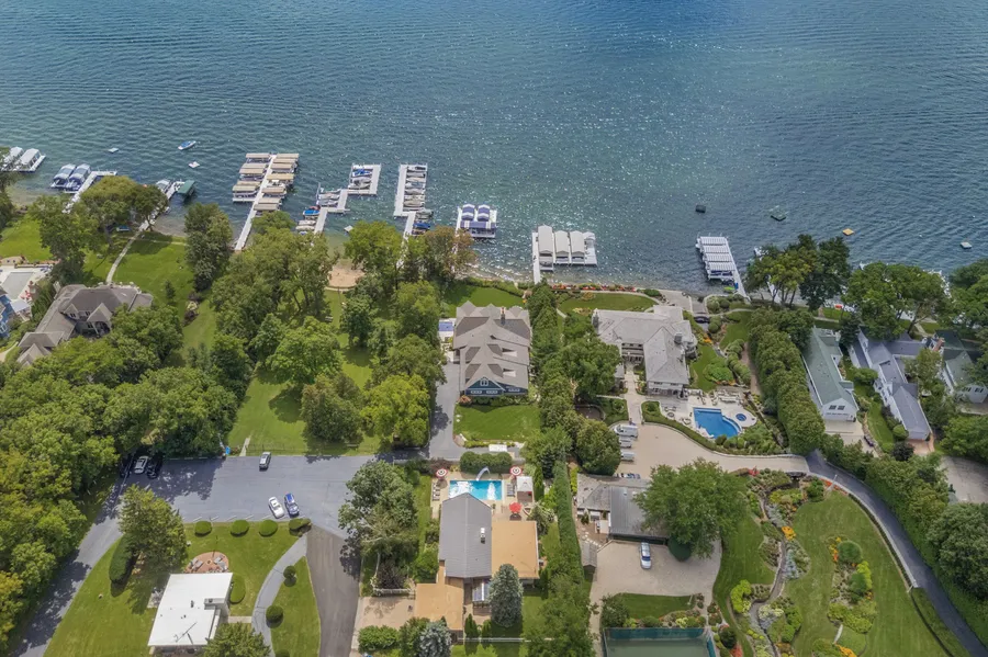 In a coveted location, this home is one house from Geneva Lake and steps from the Sunset Hills lakefront park, beach and piers. The living room features a massive stone fireplace and rich hardwood floors and ceiling that add warmth and character. The living room flows to the elegant kitchen, dining room and the vaulted four season room with walls of windows and sliding doors opening to the luxurious pool and patio. Just beyond the kitchen, a panoramic sunroom offers a full view of the serene backyard and sky. The lower level with new flooring in the family room and kitchen features a fireplace plus two more bedrooms and a full bath. This home has been meticulously maintained by one owner for thirty years with thoughtful renovations and additions making it the ultimate lake house retreat.