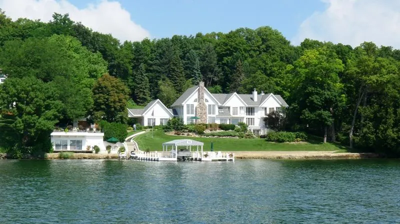 Impressive Geneva Lake Estate with 261 feet of slightly elevated lake frontage on 3.4 wooded acres with panoramic views of the lake. The grand foyer welcomes your guests to the lake house leading them to the great room with soaring ceilings, windows to match offering an expansive lake view and accented by the natural stone fireplace. Entertain comfortably with the open great room, wet-bar, eat-in kitchen and formal dining room all offering incredible lake views. Your guests will be treated to their own bedroom suites on both the main & upper levels. The master suite enjoys expansive lake views complimented with a fireplace and floor to ceiling built ins. Master bath offers double vanity, make-up vanity, walk in shower and whirlpool tub. The finished lower level offers a game room, full bath, bar, and family room with a double sided stone fireplace. The walk out lower level leads you to ...