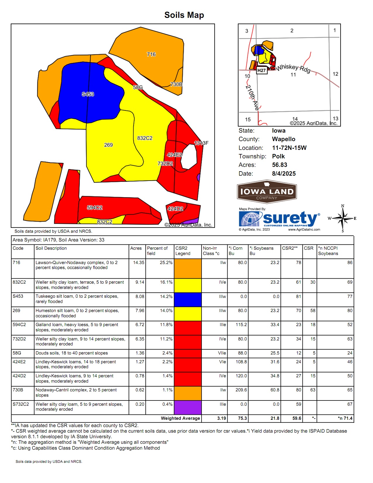 Search for detailed parcel information including; Elevation & Vegetation Maps, Ownership Information, Detailed Parcel Information, Crop History Map, Soil Survey Productivity Data, and more.