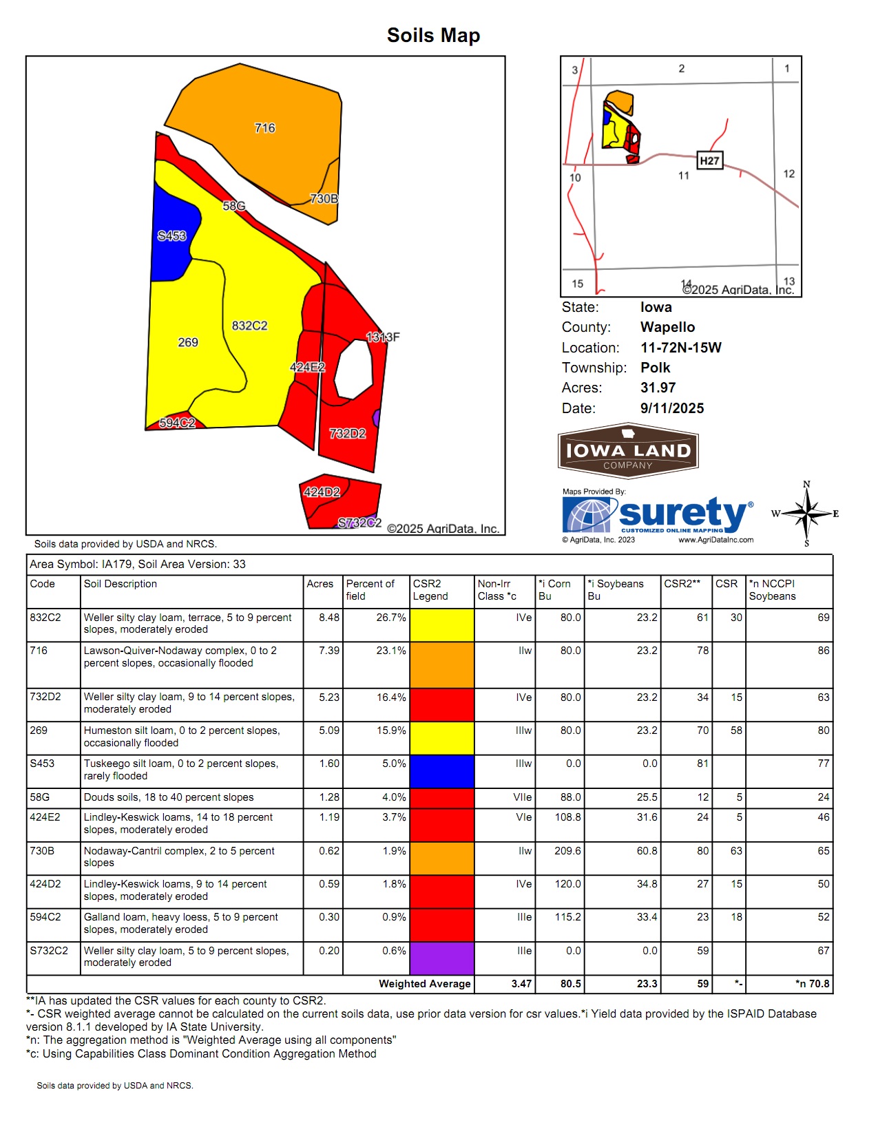 Search for detailed parcel information including; Elevation & Vegetation Maps, Ownership Information, Detailed Parcel Information, Crop History Map, Soil Survey Productivity Data, and more.