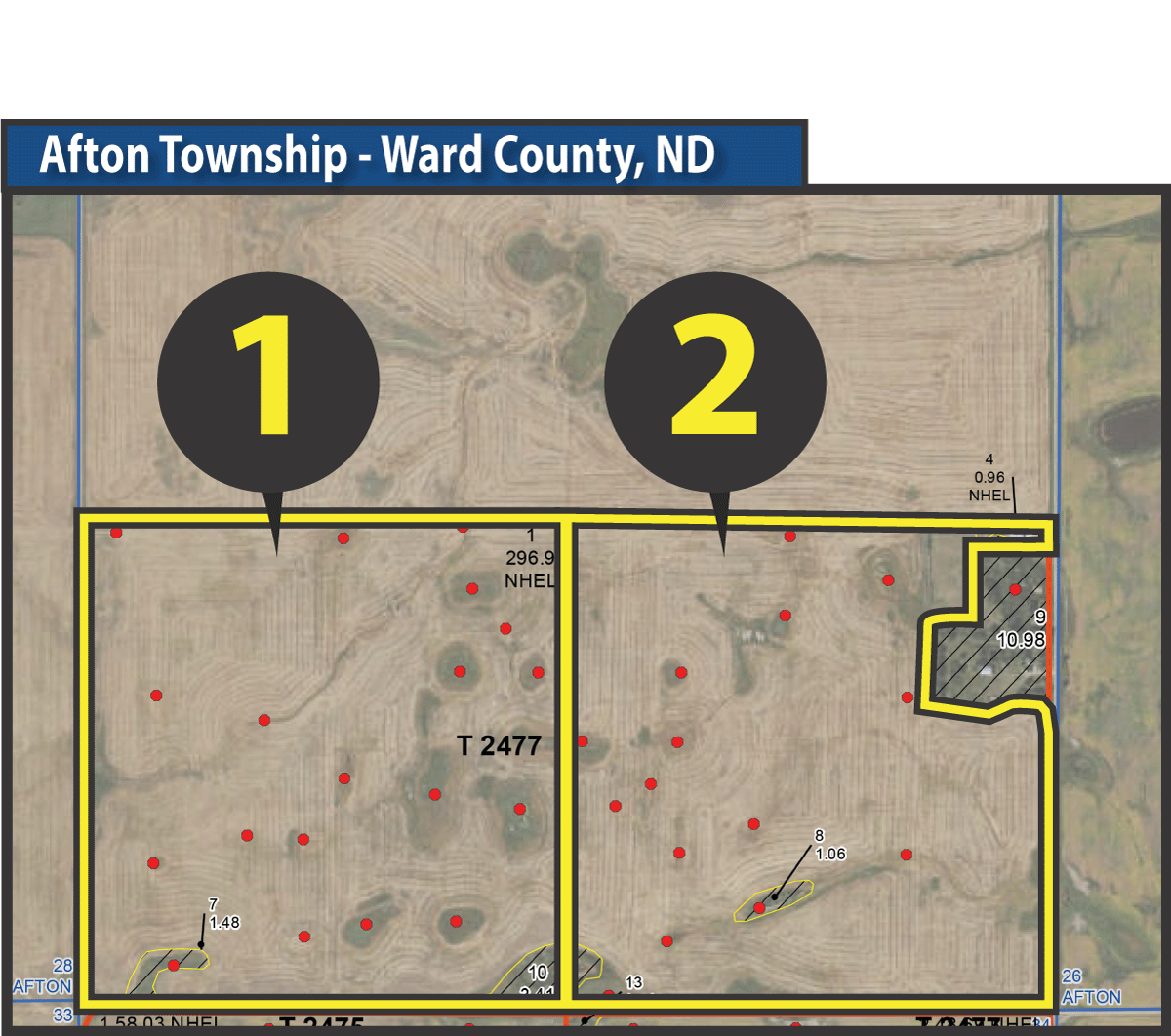 Auction Note: Highly productive cropland with strong Soil Productivity Index (SPI) of 81.5, with easy access off Hwy. #83 southwest of Minot, ND.
