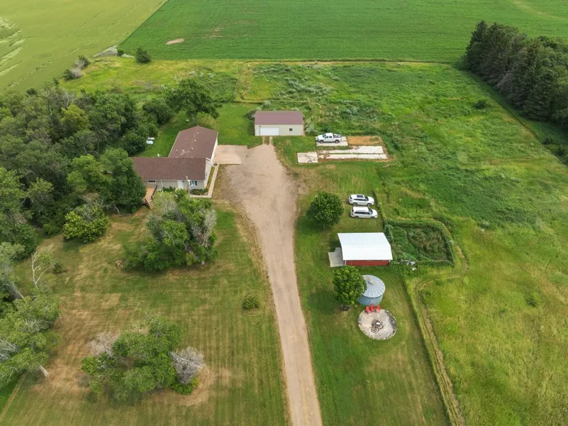 Escape to your private haven away from the hustle and bustle of life with this stunning property in Southeast Sawyer, North Dakota. Nestled on a sprawling 6.6-acre lot surrounded by mature trees, this peaceful retreat is perfect for those who cherish nature's tranquility and the simple pleasures of life. As you enter the property, you're welcomed by a cozy living room bathed in ample natural light, creating a warm and inviting atmosphere. The main floor boasts vinyl planking throughout, adding a touch of modern and elegance to the space. The primary bedroom features an ensuite bathroom and a nice closet space, ensuring comfort and convenience. The spacious kitchen is a chef's dream, offering plenty of cabinetry and beautiful quartz countertops. The dining room, currently used as an additional living space, boasts French doors that open to a large deck. This outdoor area is perfect for savoring your morning coffee while soaking in the serene surroundings. The dining room also features a gas fireplace, ideal for cozy North Dakota winters. A large mudroom, currently serving as a laundry room, provides practical convenience for everyday chores. The updated basement offers a cozy living area and an additional bedroom with a walk-in closet, complete with an elegant closet organizer. Don't forget to check out the basement floor, which has been recently finished with Legari epoxy, providing durability and a polished look. The property includes a three-stall garage, plus a newly added garage measuring 40 by 26 feet, providing ample space for vehicles and storage. Additionally, a shed offers extra storage options. This property is a true gem, offering peace, privacy, and endless possibilities. If you seek a quiet sanctuary surrounded by nature, look no further. This is the perfect place to call home.