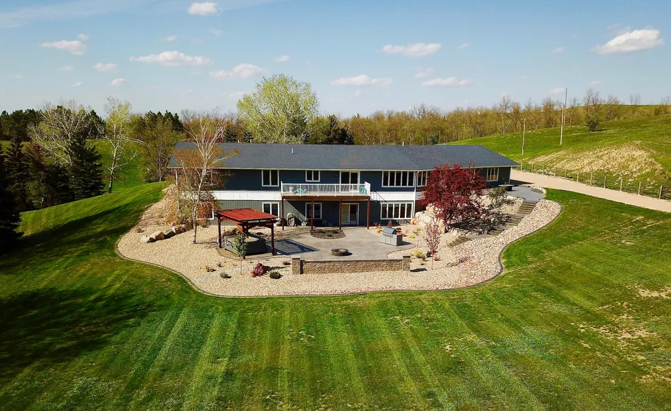 The attention to detail and quality of every aspect of this property is simply amazing. It starts with getting there when you drop down into the draws on Minot’s southeast side. Leaving the flat farm ground behind, you enter a different world of hills and brushy draws that come alive with animals and seclusion. There is no gravel to take or dust to deal with as the paved driveway leads right to the front door or the five-bedroom, 3.5-bath, 5,040-square-foot home that has been meticulously kept up and cared for. The wide open floor plan and numerous windows give the main floor a bright, clean feeling, and with the kitchen island, wide bar top, dining room, and den area, there is no shortage of space to host people. The large maintenance-free deck off the dining room adds space to enjoy the sunsets and views of the large backyard. The lower level is much the same and has been recently completely renovated. It is another home inside a house with a fully equipped kitchen, two bedrooms, a bathroom, a dining area, an island bar, and a fireplace, to name a few of the amazing features. There are two heating/cooling zones in the home, one for the main floor and one for the lower level, so everyone always stays comfortable no matter where they are. Both furnaces are new, the pressure tank is new, the central air is new, and a new reverse osmosis system is installed, so the cleanest and best drinking water is there for you, and the list goes on and on. So many features and of the highest quality throughout give this home enjoyment and peace of mind. The attached three-stall garage is insulated, heated, and finished, so your vehicles and toys stay warm and dry with plenty of room for projects and tools. Moving outside to the back of the house and garage is the stunning patio area. Professionally installed stamped concrete, blocks, pavers, boulders, and landscaping make this look like Better Homes and Gardens cover. There is a fire pit area, a gas grill area, and a hot tub area, all easily accessed from the walk-out door of the home's lower level. Along the access road behind the house sits a 24’x40’ barn/man or woman cave. The front half is insulated, finished, and heated with a storage area. The back half is set up for cold storage with a concrete floor. It’s the perfect area for a play house, exercise room, storage, or a variety of other things. In the rear of the yard is a chicken coop with power and a thermostat for keeping critters safe and warm. There is an enclosed chain link fenced area attached to the shed, and it would be a perfect dog kennel because there is also an underground dog fence around the yard with three collars that will go with it. To top all of this off is the location. It feels like you are hours away from a city, but you are only minutes from the city, and its amenities are under 5 miles away. The demand for rural properties that have acreage within a few miles of a city is high in demand. This property is not only that but is incredible and has the wow factor everywhere you look. Call me today for more information about this amazing property and opportunity.