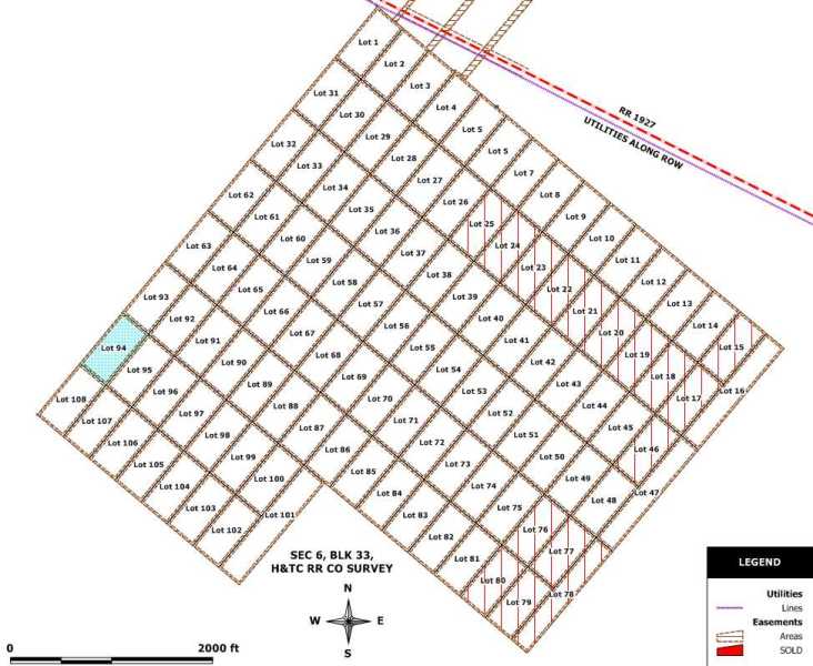 Lot #94 out of Section 6, Block 33, H&TC Railway Co. Survey, Ward County, Texas, ±5.1 Acres. Lying just north of the Pecos River, the property lies in an area of rural beauty. The property is flat to slightly rolling with sandy soils and sparse vegetation, which provides wide open views of the surrounding area. The brush is widely spaced, leaving plenty of room to get around. Easy to get to from IH-20 or IH-10, the property has legal access from Farm-to-Market Rd 1927. Electricity and phone utilities are along the highway, only a few feet from the north corner of the section.
