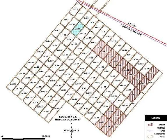 Lot #29 out of Section 6, Block 33, H&TC Railway Co. Survey, Ward County, Texas, 5.1 Acres. Lying just north of the Pecos River, the property lies in an area of rural beauty. The property is flat to slightly rolling with sandy soils and sparse vegetation, which provides wide open views of the surrounding area. The brush is widely spaced, leaving plenty of room to get around. Easy to get to from IH-20 or IH-10, the property has legal access from Farm-to-Market Rd 1927. Electricity and phone utilities are along the highway, approximately 675 feet from the corner of this lot.