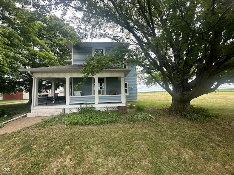 This country farmhouse has a beautiful and peaceful setting! It's a two-story home situated on 4.6 acres with a detached 2 car garage and two pole barns. The house is cozy and inviting with front porch sitting. Upon entering the home, you enter into the dining space that's right off of the galley kitchen. The kitchen has wooden cabinetry and built in ovens. Off of the dining room is a recently renovated rustic bathroom with a stand-up shower. The living area is spacious with a fireplace and another sitting room right off of the living room. Upstairs you find 2 bedrooms and a full bathroom. The bedrooms are a good size with tall ceilings and just down the hall is a newly remodeled full bathroom. Outside you find the detached 2 car garage, a storage shed, and two large pole barns. The home overlooks pasture and a large yard. It's a must see!
