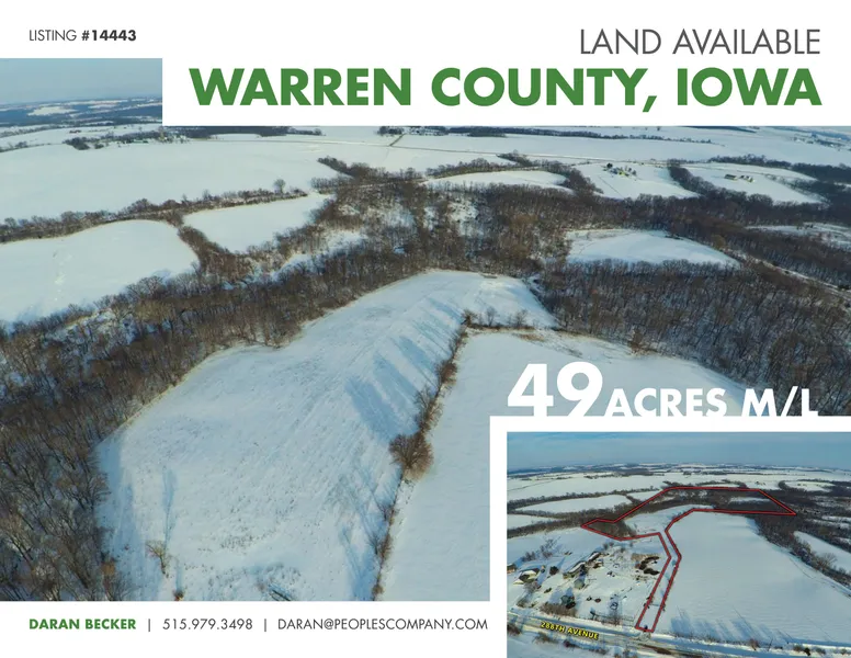 Offering 49 acres m/l of whitetail heaven located just northeast of Sandyville, Iowa in Warren County. This farm comes turnkey, with food plots, switchgrass bedding areas, and well positioned stands already in place. It has just enough tillable acres to hold the deer throughout the season with a heavy timber sanctuary located along the east edge of the property. Turkeys roost in the mature oak and buckeye trees that line the field next to the creek. The creek meanders through the farm providing a year-round water source. The tillable acres can be rented if desired.