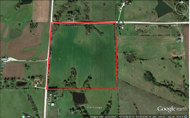 39.58 acres in southern Warren County just a quarter mile off pavement and minutes to the Interstate. Excellent building spot on the ridge with tremendous views. Rural water and electric are at the road. This farm offers easy access to both I-35 and HWY 69 with little traffic until you get to the interstate. The farm is currently in hay and is subject to the tenants rights to the hay crop for this year.