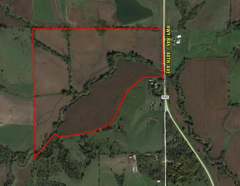 106.78 acres m/l of productive Warren County, Iowa, farmland for sale in a strong area. Farm consists of 90.97 FSA tillable acres with a CSR of 61.8 (CSR2 of 58.2). Farm offers great recreational opportunities as well with several timbered draws and access to Broadhorn Creek meandering through the property. Several locations for potential building sites with great views of the Warren County countryside. Situated on a hard surface road with an 8 inch water line along the west side of the road. Rural water provided by Warren Water District. Great investment opportunity located approximately 4 miles south of St. Marys, approximately 4 miles north of New Virginia, and along the west side of Hwy R45/40th Ave in Section 4 of Virginia Township.