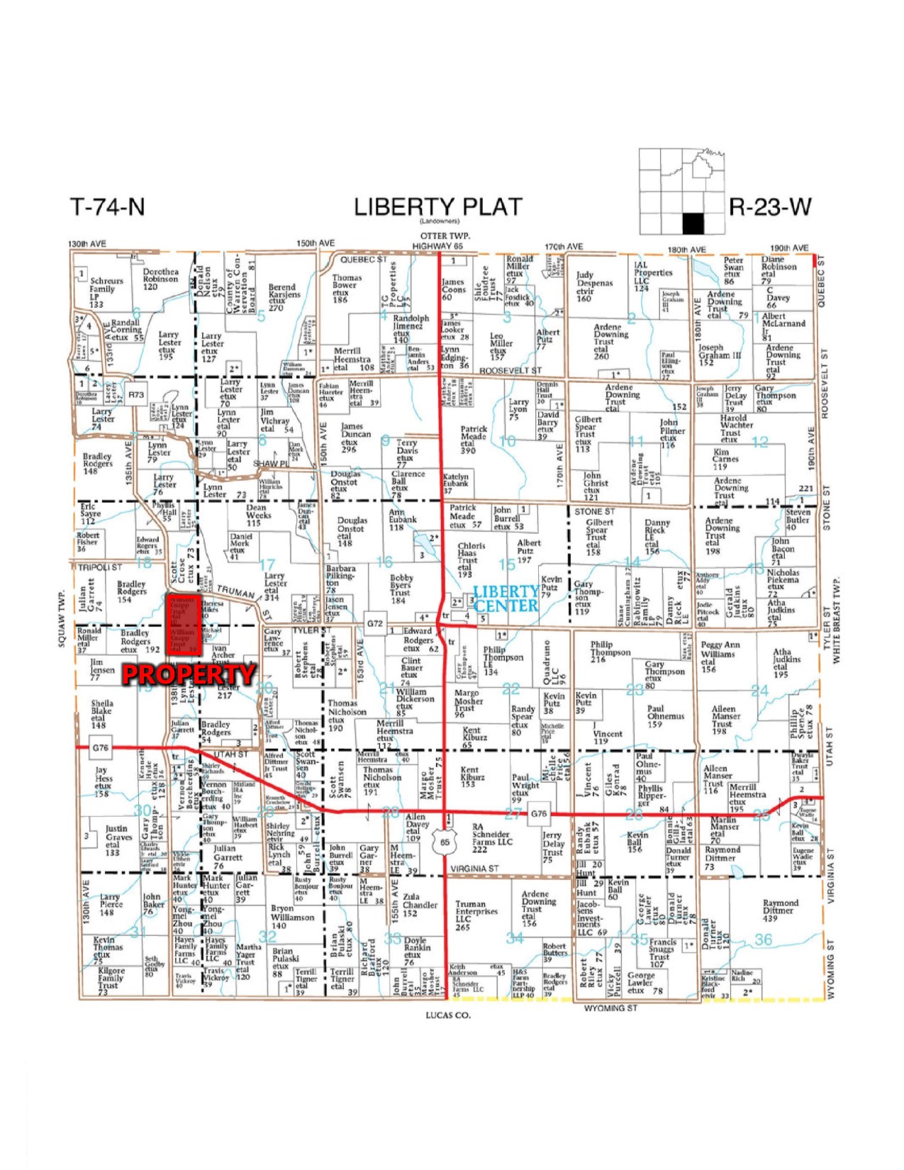 Research Parcel InformationFrom Hwy 65 in Liberty Center, travel west on Tyler St roughly 2.5 miles (Tyler St will curve north then back west and become Truman St) to 138th Ave. Farm is located on the southeast corner of Truman St and 138th Ave.