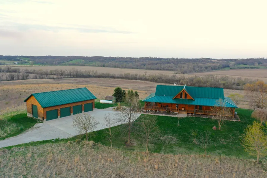 There are not many homes in Iowa with million-dollar views, but this beautiful, 4 bedroom, 3 bath, Appalachian log home definitely has one of the best I have ever seen! With over 1,900 square feet of above-ground finish and a full wrap-around deck, you will be able to enjoy the amazing views at any time of day and a screened-in back deck for enjoying the summer evenings. The main floor includes three bedrooms with both the master bath and second bathroom being recently remodeled. The kitchen and dining area has been updated with granite countertops and boasts vaulted ceilings, and hardwood floors and includes a large mantle with a wood stove for those cozy winter mornings. The home features first-floor laundry and a second entry door for easy access. The loft is currently used as office space but could easily be converted into an additional bedroom or family room. The walkout lower level includes a large family room, a 4th bedroom, and a 3/4 bath. Without a doubt, this home is the perfect place to entertain guests and enjoy a rural living lifestyle. The 1,500 sq feet detached garage has four overhead doors and plenty of room for all your vehicles and toys and has a heated tool room and 3/4 bath. The approach is roughly 3,275 sq feet of poured concrete providing plenty of room for basketball or pickleball courts. Don't miss your chance at this one-of-a-kind dream home. ADDITIONAL - 86.49 Acres M/L - AVAILABLE - Please reach out to the listing agent for questions.