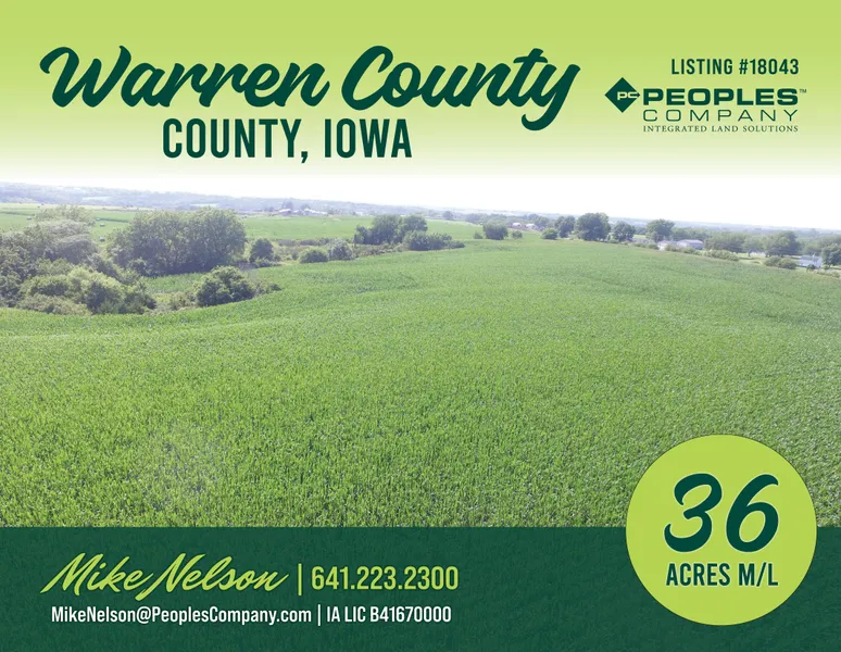 Incredible 36 m/l Acre Warren County IA farm with beautiful building sites and great farm income. This farm offers multiple building site choices with scenic views of the surrounding countryside. A buyer could build close to the road or go further back in for as much privacy as they desire. For your recreational needs, there is a pond and timbered acres on the southwest side of the farm. There are 30.9 FSA tillable acres on the farm with a high average CSR2 of 60.7. This farm is conveniently located with quick access to Highway 69, leaving a short 15-minute drive to Indianola or a 30-minute drive to Des Moines. Rural water and electrical services are available on the road.