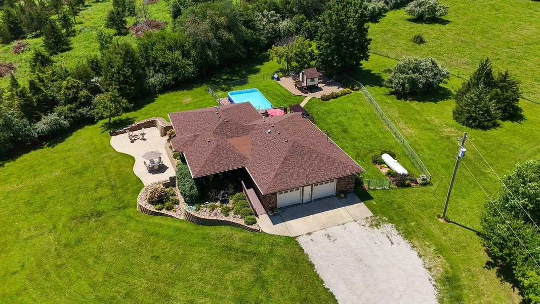 *************************OPEN HOUSE CANCELLED**************************** GORGEOUS ACREAGE!!!! PRIVATE AND PEACEFUL! 7.5 (m/l) acreage 1.5 miles off of HWY 169! Just minutes to Des Moines! This nearly 2000 square foot ranch walk out home boast over 3500 square feet of finish! Meticulously maintained and a great spot to entertain! In the updated kitchen you will find granite countertops, a pantry and beautiful hardwood floors. This home also boasts an OVERSIZE 29X33 2 car garage to fit even a 4 door pickup! The primary en-suite boasts a tile shower with a large walk in closet! In the lower level walk out, you will find 9 foot ceilings, a huge family room, wet bar along with 2 conforming bedrooms also with walk in closets AND 2 non-conforming bedrooms for a total of 6! This home has so much outside space to entertain and enjoy with a large covered front porch and a huge concrete patio and don't forget the above ground pool, deck and pergola!! Also out side you will find a large 36x54 steel building where you can enjoy your large heated and insulated shop-- Bring your horses to enjoy approximately 6 acres of lush pasture and a HUGE outdoor arena with lights! 6 horse stalls with rubber mats and automatic waterers along with a designated tack room to keep all of your supplies and horse items!!