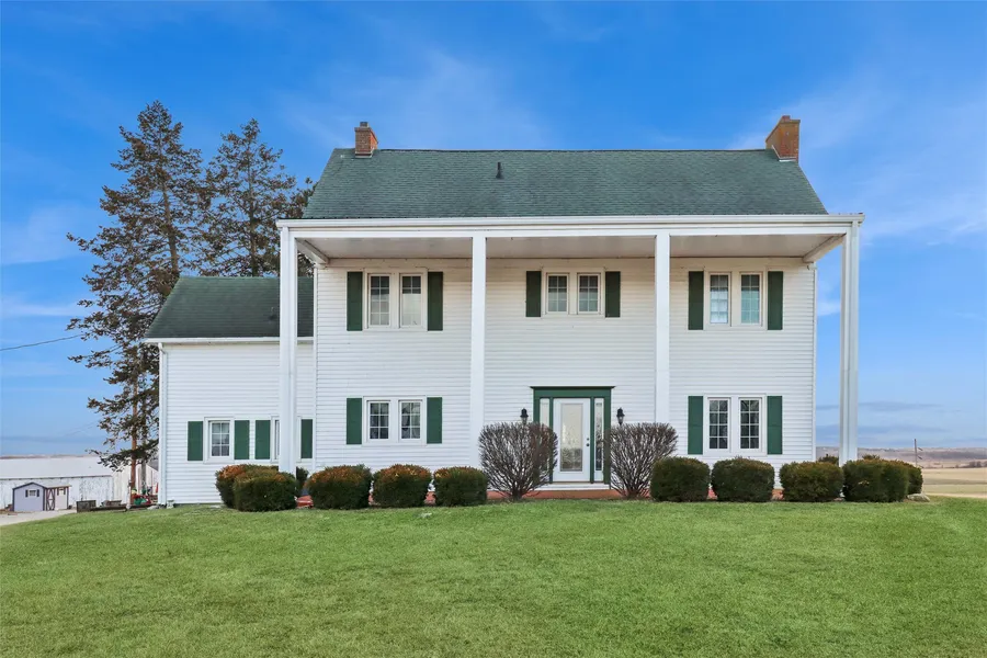 Rarely does a property of this caliber become available. This historic 1860s farmhouse is set on 18.68 scenic acres, offering a remarkable blend of preserved character, space, and privacy. The home features 9' ceilings, 8" baseboards, and two wood-burning fireplaces, creating a warm and timeless atmosphere throughout. The oversized kitchen showcases brick flooring and beamed ceilings, with ample room for a dining table-ideal for both everyday living and entertaining. A knotty pine office adds charm and functionality, while the four-season room overlooks the south end of the property, providing peaceful views year-round. Upstairs, you'll find three bedrooms and a full bath. Updated windows with a lifetime warranty add modern efficiency while maintaining the home's historic integrity. The exterior is equally impressive, featuring a private, stocked one-acre pond, multiple outbuildings, and a three-car garage. A covered front porch with an approximate 20' height offers a striking first impression and a perfect place to enjoy the surrounding landscape. This is a truly unique opportunity to own a historic farmhouse with expansive acreage, exceptional features, and enduring appeal. Just minutes from the the Highway 5 bypass makes for an easy commute!