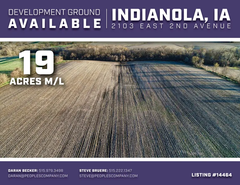 Offering 19 m/l acres of commercial development ground located in Indianola, Iowa. The property is conveniently situated on the east side of Indianola along Highway 92 with quick access to Highway 65/69. Property is currently zoned C-2 with utility infrastructure readily available to the site. Future land use plans call for low density residential and highway commercial in the general area. Indianola is currently in the process of updating the city land use plans. As of August 20th this property is no longer in a sewer connection fee district and is only subject to normal sewer connection fee's.