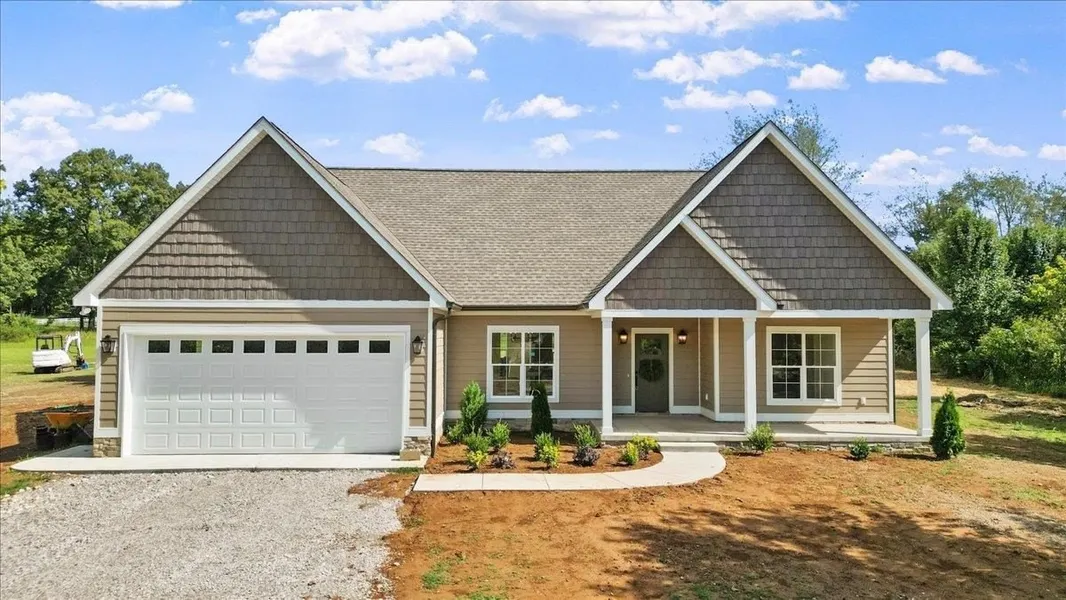 Experience luxury in your custom home, complete with fiber-optic internet. The open-concept design centers on a stunning kitchen featuring granite countertops, custom cabinetry, and a spacious pantry. A striking stone fireplace soars to the ceiling in the main living area, perfect for cozy winter nights. Entertain on the back patio, enjoying views of your lush, tree-filled acre of property. Neutral tones and impeccable craftsmanship throughout.