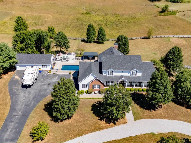This beautifully updated 4-bedroom, 3.5-bath home offers the perfect blend of comfort, style, and space. Featuring a 2-car attached garage plus an additional 2-car detached garage, this property is designed for convenience and versatility. Inside, you'll love the fresh updates throughout, including new paint, refinished hardwood floors, new carpet, updated light fixtures, blinds, exterior doors, and a newly designed master closet by California Closets. The spacious layout includes a formal dining room, office space, large utility room, and cozy fireplaces in both the living room and the master bedroom. Step outside to your own private retreat with an in-ground pool, pool house, brand-new pool liner, fenced backyard, and a covered front porch perfect for relaxing. A new security system adds peace of mind. Nestled on 3.02± acres in a serene county setting, this home truly has it all‹”indoors and out!