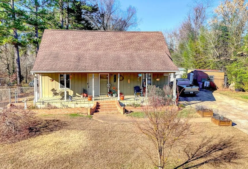 This charming 1.5-story home offers 3 bedrooms and 2 baths on a spacious 1-acre corner lot. Inside, soaring vaulted ceilings create an open, airy feel, while the bright, sunny yellow kitchen adds a cheerful touch. Enjoy outdoor living on the covered porch that spans the length of the home or step out onto the large deck overlooking the fenced backyard. A wired workshop provides extra space for projects or storage. Located in an established area with new construction nearby, this property offers both character and future value.