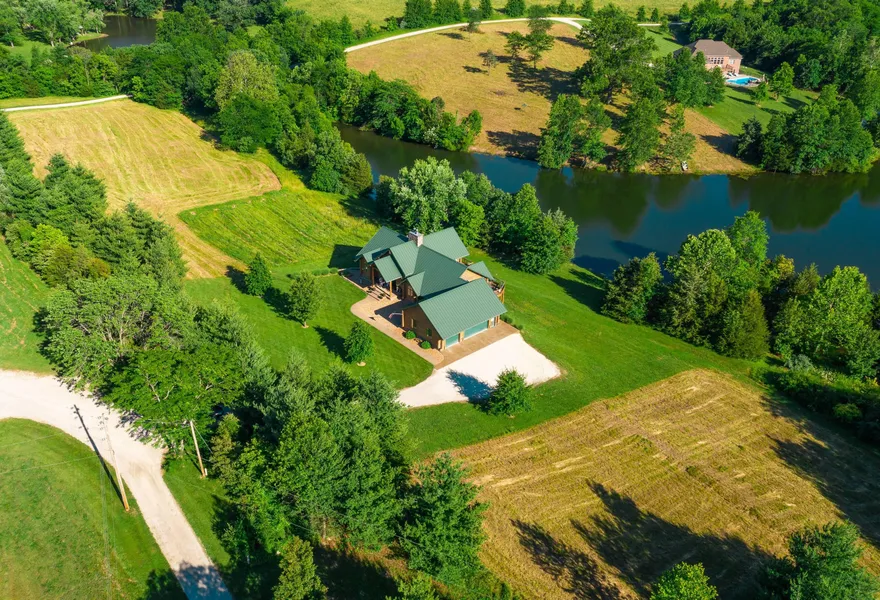 Eagle Valley Compound includes so many potential uses. The 40 acres surrounds stocked spring fed 8 acre Eagle Lake, with 2 homes several outbuildings and 30 acres of mature woods for hunting, food plots, nature (Trophy Deer) and potential gardens. The main home has been featured in Log Home magazines, it was built as a spec home which means it features ALL THE BEST the builder had to offer. It is a lodgepole pine log home & Green Home so super energy efficient. A few of features included a gourmet kitchen, granite countertops, stainless appliance, hickory cabinets, breakfast room, stone fireplaces, theatre room, central vac, geothermal heat, The second home is 3 bedroom, 1 bath with dock and patio on the water. Use for year round rental income, vacation rental or mother-in-law home. Sitting on 4 lots so room for 2 homes. Equip shed is 40x24, Workshop 48x30 with 48x24 lean-to. Only 60 miles to St Louis and 45 to St Charles. More details available, this is a One of a kind opportunity!