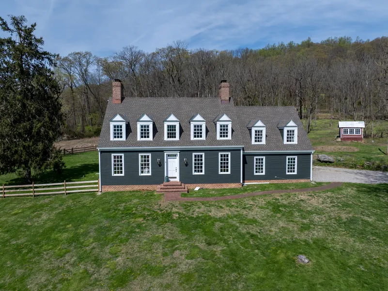 A Beautifully Crafted True Reproduction. Authentic 28-year-old Colonial design, just renovated and painted with all true "Williamsburg" colors. Absolutely breathtaking views and over 100 acres of fields, wooded paths and pond. This site has it all. New Chef's appliances, Soapstone counters, farm Sink, Wolf six-burner range, Fisher and Paykel refrigerator/freezer, Wolf wall oven and combination oven/microwave. Bosch dishwasher. Oversized brick fireplace with swing arm pot hanger in breakfast Area. Several outbuildings include two barns, two lean-tos, root cellar and corn crib. Wooded hillside includes stand of black walnut trees and a private campground. Farm assessed with a barn ready for new owner's renovation. Fireplaces in living room, library, kitchen and primary bedroom. Brand new baths, one with clawfoot tub. New windows on site ready for installation. Bonus room over garage can be...
