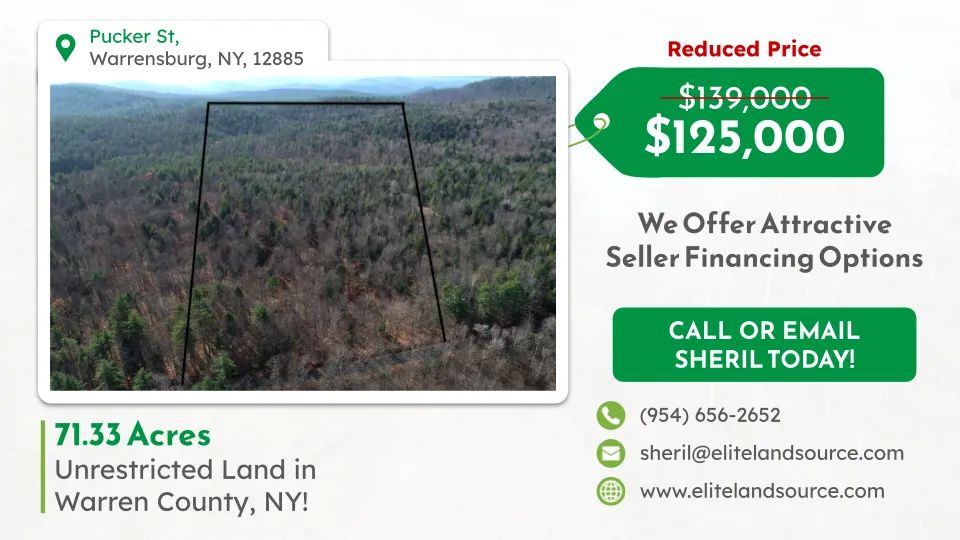 Invest in the future with this stunning 71.33-acre property in Warren County, NY. Perfectly situated with access on Pucker Street and just 12 minutes north of downtown Warrensburg, this expansive, back to front lot is a rare find for investors and developers alike. Surrounded by natural beauty, this property offers incredible potential for hunting, recreational use, agricultural development, or forest conservation.