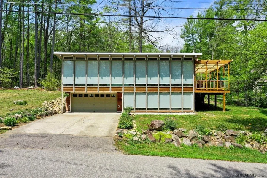 BID DEADLINE 7/21/21 @2PM. 3 bed 2 bath unique passive solar home situated on .31 acre lot in quiet area of Lake George! Owner has painstakingly gutted & started bringing this home back to its midcentury modern roots! Lower level w gorgeous epoxy floors, open concept wood slab stairs, mud & laundry room, custom shoji panel wall separating master bedroom w walk in closet & gorgeous new bath w custom tile shower & tasteful finishes. Upper level has all new flooring, wood beamed ceilings, 2 nice sized bedrooms, full bath, living room, dining room & retro style kitchen! Enjoy the outside oasis on the elevated deck w custom privacy panels, & beautiful pergola! Very efficient, 8KW owned solar panels installed new standing seam roof make most of the home's energy! Adjacent .40 ac lot avail $59k!