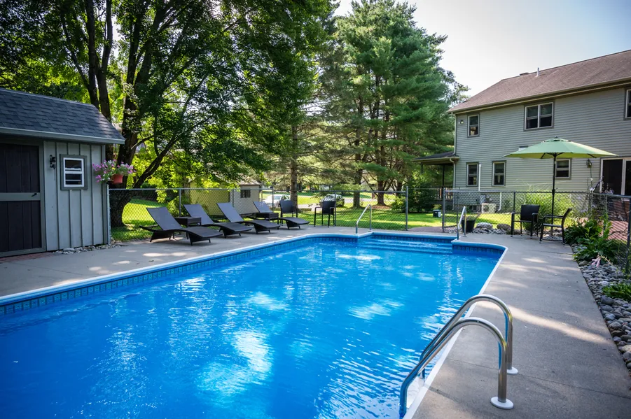A meandering drive through the eastern countryside of the Lake George area begins the story with stunning sights of tall mountains, soaring pine, hemlock and oak trees, wide-open vistas and homes in serene settings. Turning into Fox Road, travelers find a friendly and beautifully maintained neighborhood. Down at the end, 104 Fox on the corner, invites with its Adirondack rocking chairs lining the mahogany wrap-around porch, its in-ground swimming pool surrounded by lovely landscape and the home’s stately placement on lush sprawling lawns. Inside, find a welcoming layout with room for all to gather, nooks for peaceful relaxation, four generous bedrooms second floor. Premier bedroom has private & grand ensuite... decked in timeless tile. The story is complete: such privacy and quiet is located just ten minutes from all the natural beauty, action and fun of the four-season playground of Lake George.