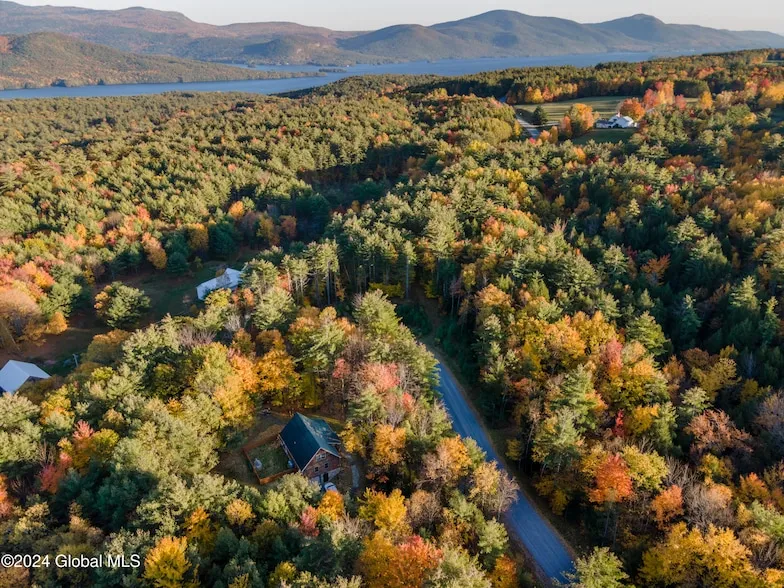 Incredible opportunity to own a stunning custom chalet on a private and picturesque 1.75 acre lot! Just five minutes from Lake George beaches and Bolton Landing village, this home is flooded with natural light. It features an open floor plan with tasteful log and stone accents, beautiful stone fireplace, line of skylights, long covered porch and a flagstone path leading to a large boulder firepit, where you can take in breathtaking fall mountain views and sunrises. The adjoining 1.25-acre lot is also available for a total of 3 private acres. Recent updates include: new plumbing, furnace, heat pump/AC, on-demand HW heater, custom-built deck railings with hand-hammered copper tops, and brand new carpeting in the bedrooms. The walk-out basement offers potential for additional finished space
