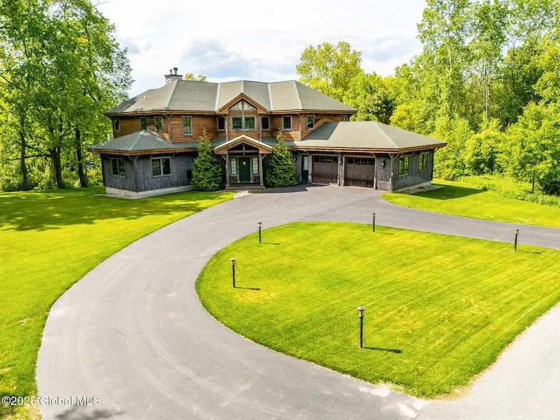 Make this your ultimate summer getaway! This 6,000 sq ft Adirondack home, designed by renowned architect Michael Bird of Adirondack Design, offers luxury and serenity just a 5-minute drive to boat docking on Lake George. Features include Hickory flooring, Douglas Fir moldings, 10' ceilings, and a chef's kitchen with cherry cabinets and Corian countertops. Enjoy mountain views from expansive decks, explore wooded trails, and admire six handcrafted fieldstone walls. With 4 bedrooms, 3.5 baths, and second-floor laundry, it's the perfect blend of comfort and natural beauty.