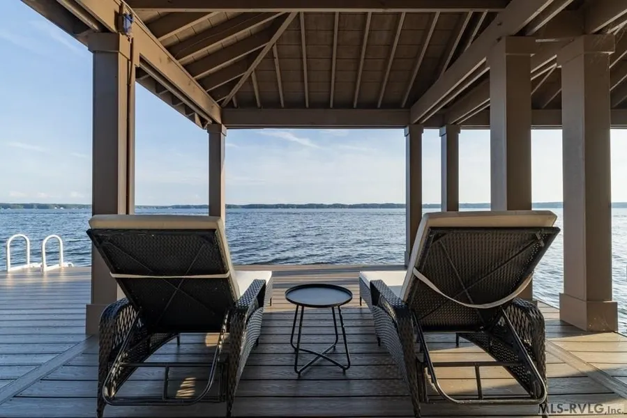 Perfectly positioned overlooking the widest, most expansive section of Lake Gaston, this gorgeous exquisitely styled and furnished newly constructed custom home offers breathtaking sunsets for an unmatched lakeside lifestyle! From the moment you step inside, you're greeted by a stunning open layout that seamlessly blends elegance and comfort. Soaring cathedral ceilings with exposed wood beams, dramatic fieldstone fireplace, finished-on-site white oak floors, upgraded trims and designer touches throughout create a warm, timeless atmosphere drenched in natural light. The heart of the home is the chef's dream—featuring custom cabinetry, stainless appliances, and a spacious butler's pantry—perfect for entertaining in style. The main-level primary suite is a luxurious peaceful retreat with a cozy reading nook, tiled bath, and generous walk-in closet. Guests will appreciate the spacious bedrooms, while additional living spaces include an elegant dining room w/ 12' ceilings, a versatile lower level with large recreation room, wet bar, dedicated gym or theater space, private waterside office, and a second waterside primary suite. Outside, the natural stone exterior makes a striking statement, while expansive waterside porches and large patio provide the perfect backdrop for entertaining or relaxing as you take in panoramic lake views and spectacular sunsets. A large double boathouse with deep water access completes this exceptional lakefront package. Whether you're seeking a tranquil escape or a stunning gathering place for family and friends, this rare main-lake gem is truly turnkey—offered fully furnished and exquisitely styled, ready for you to enjoy from day one! Improved access with a newly paved driveway and paved subdivision roads throughout Davis Grandview Estates!