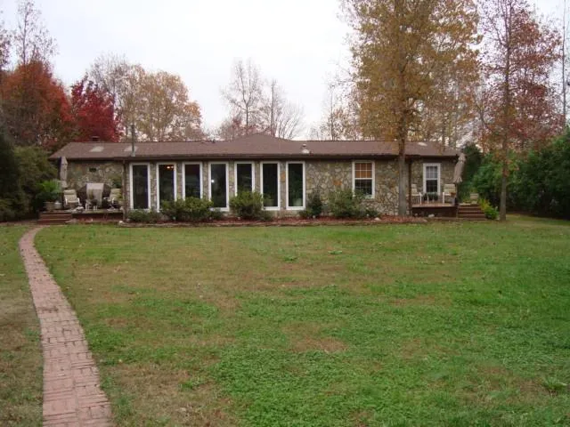 Spacious and attractive home with wide view of the mouth of Hubquarter Creek to the main lake. This home has it all; large eat-in kitchen with island; open to living room with fireplace & french doors, dining room with french doors to large screened porch, den with bay window, large sunroom with energy saving windows and pellet stove, four bedrooms & four separate decks! The gently sloping lot has 182' bulkheaded waterfront & double boathouse with sundeck. This would make a great rental! Stone and cedar exterior gives lots of character & there are two storage buildings with lots of parking space. Don't let this one slip away without you seeing it!! South west location convenient to triangle.