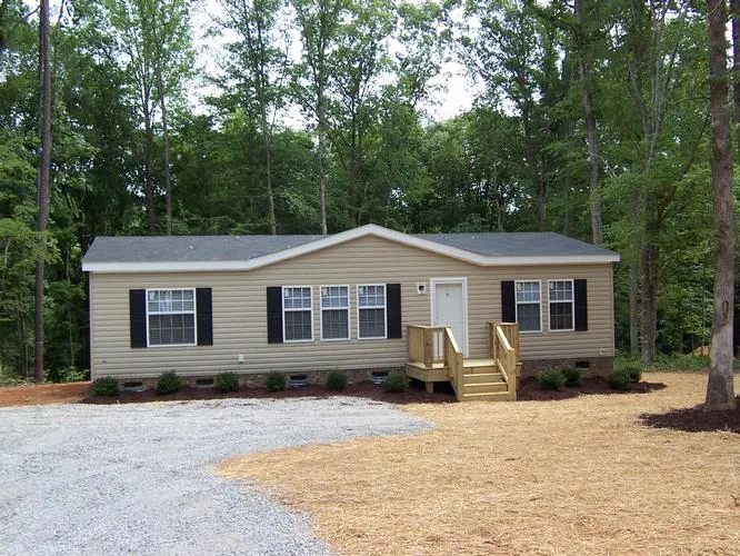 New double wide with view of golf course. Master suite on one end of home and the other two bedrooms on the other side of the living room and kitchen/dining area.