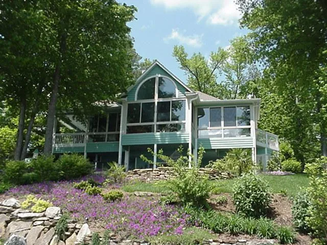 This beautiful home has been tastefully and colorfully updated and has a really delightful interior. Located on the main lake with a gorgeous view and a great location only three minutes from the Food Lion complex. This home can accomodate lots of people, and has lots of room for entertaining yet could be efficiently used by a small family. The living room opens to a sun room lakeside with charming decks overlooking beautiful landscaping. The full basement has family room, rec room and two other rooms plus a full bathroom. Each floor has it's own HVAC system. A large double boathouse sits at the waterfront,the water is deep, and there's an attached two car garage! This is a great deal!!