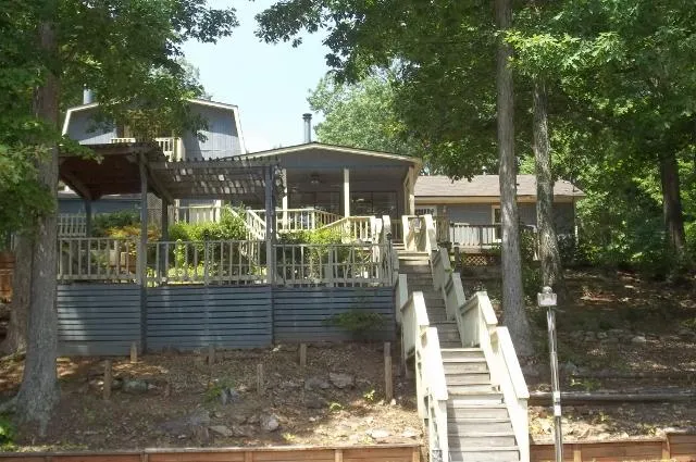 Lake house for sale in nice tranquil area of Lake Gaston. Home was originally a doublewide, but all that is left is the subfloor of the doublewide. Main level has LR w/ FP, 2BR/2BA, laundry area, study, addl lakeside fmly room w/ FP & sliders to lakeside deck. Kitchen w/ nice cabinetry, tile backsplash & appliances. You'll find skylights throughout the home for added natural light. Upper level has MBR & MBA, kitchenette and sitting area w/ fp as well as access to lakeside. Attached garage w/ work area. Concrete driveway. Lots of lakeside decking. At the bulkheaded shoreline you will find the double boathouse, dock/pier & the expansive wide pretty lake views for your enjoyment.