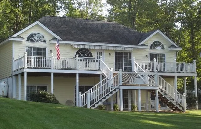 Lovely Family Lake House in Lake Gastons West Winds Sbdvsn. Main level living area w/FP, kitchen, eat-in area and formal dining. Ceramic tile flr & carpeted areas throughout. Lakeside MBR w/ sliders to deck, MBA w/ Jacuzzi tub/shwr, double sinks, walk-in closet. 2 addl BR and BA. Main level laundry area. Finished lower level w/ walkout to lakeside patio. A spacious LL w/ office area &/or family fun. 2 addl undesignated rooms to use at your discretion & BA. Large utility rm & access the garage too. Large lakeside deck & awning ideal for outdoor entertaining. Concrete driveway. Fairly level lot to waters edge where youll find sand playing area & outdoor chimney for those clear nights by the water. Very large boathouse w/ a portion covered and 2 jet ski lifts. Boathouse large enough and could be converted to double bthse. Beautiful wide cove to main lake views.